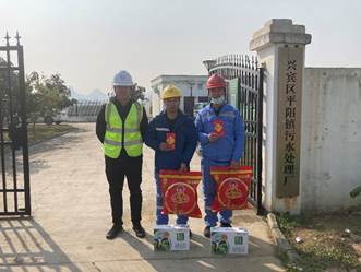 新春慰问暖意浓,关怀鼓励士气振。除夕至大年初三,公司领导韦崇高和慰问组成员杨磊、覃显淳、黄光苠、罗之吉、谭彬彬、何剑,分别到广西、贵州、广东、湖北等地我司运维的污水处理厂、建设项目和南宁基地,代表公司看望慰问春节期间坚守岗位的一线同事,向他们送上兔年新春的问候和祝福,对他们的辛勤付出和他们家人的大力支持表示衷心的感谢。话家常、问冷暖,叮嘱大家在工作的同时也要注意身体,合理安排休息时间,并为大家加油鼓劲,勉励大家以饱满的精神状态投入到春节期间的工作中来。