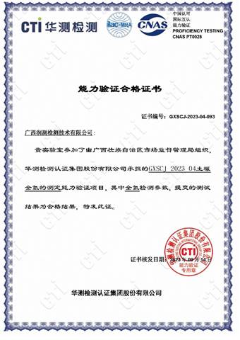 近日,广西润测检测技术有限公司(以下简称“润测技术”)按照《自治区市场监管局关于开展2023年度全区检验检测机构能力验证工作的通知》文件精神,以及《检验检测机构资质认定管理办法》《检验检测机构监督管理办法》《检验检测机构能力验证管理办法》等有关规定,组织参加了2023年度全区检验检测机构能力验证盲样考核工作。
